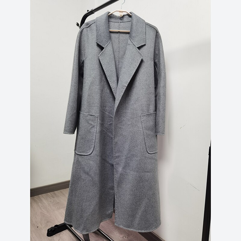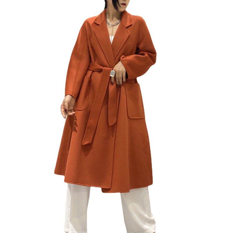 Creatingtime Water Ripple Bathrobe Style Double-sided Cashmere Woolen Coat Women's Notched Bandage 2023 Spring Autumn New GA809
