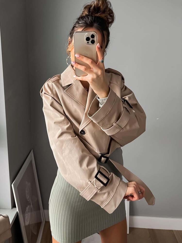 TRAF Women Coats Fashion With Belt Spring Crop Jackets Coat Vintage Long Sleeve Casual Street Female Outerwear Chic Tops
