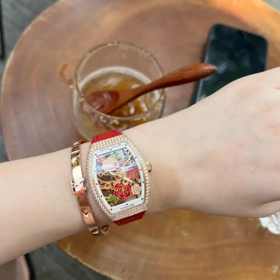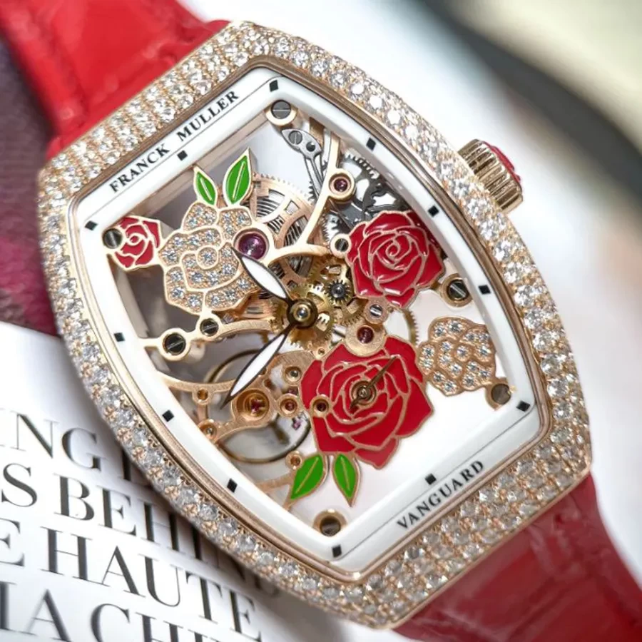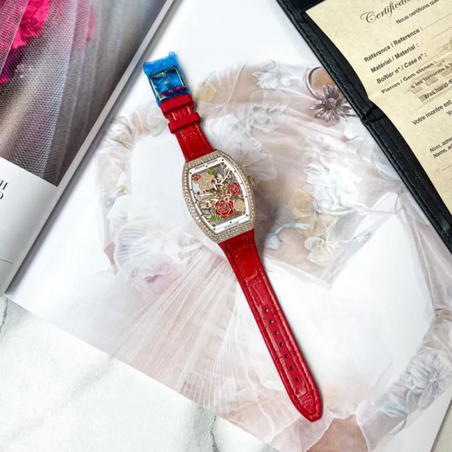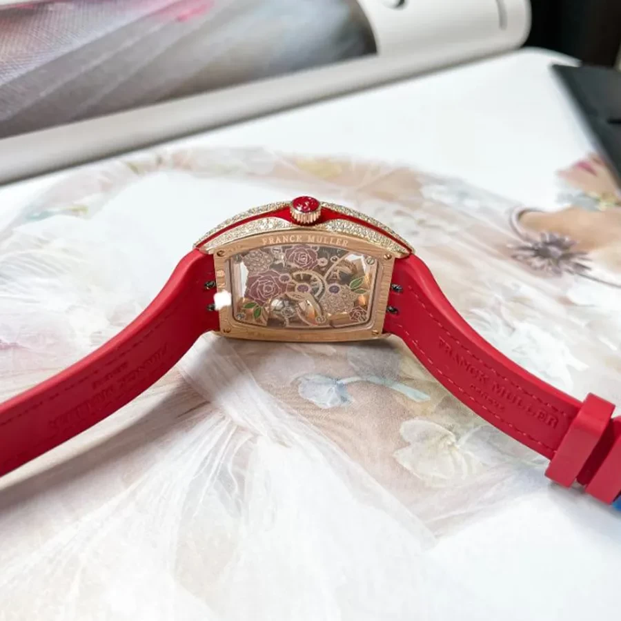 Đồng Hồ Nữ Franck Muller V32 Rose Gold Skeleton Màu Đỏ/