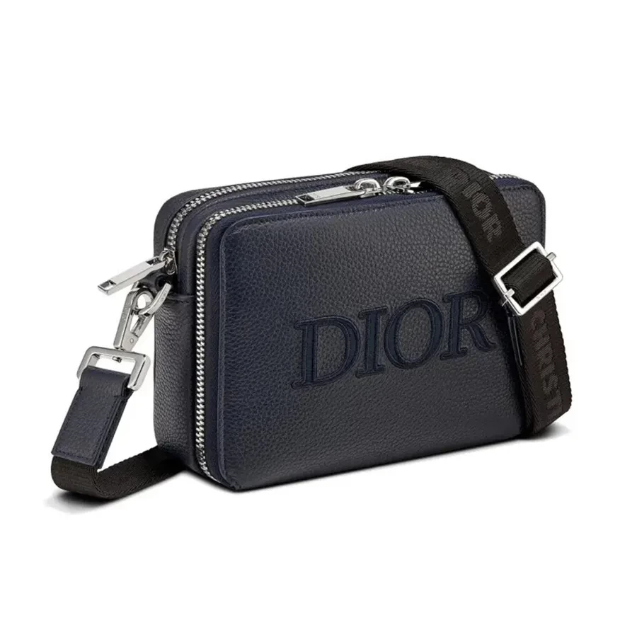 Túi Đeo Chéo Dior Grained Calfskin Messenger Bag Màu Xanh Navy